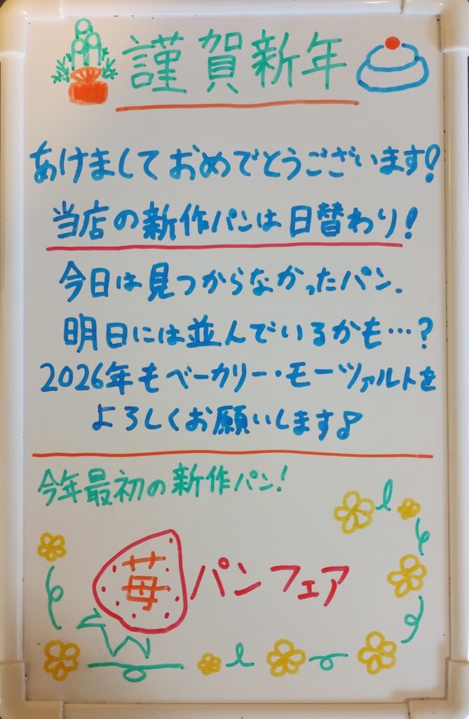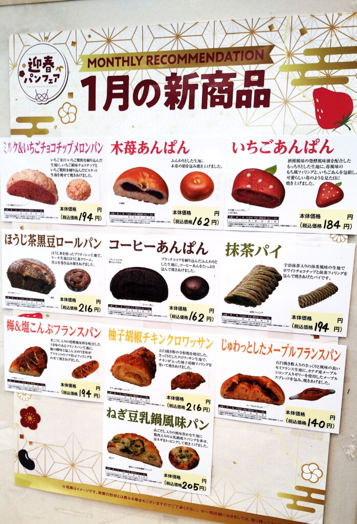 今月は苺パンフェア! 苺らしいポスターが特徴!苺の他にも新作パンは沢山あるので、どうぞご確認くださいませ!