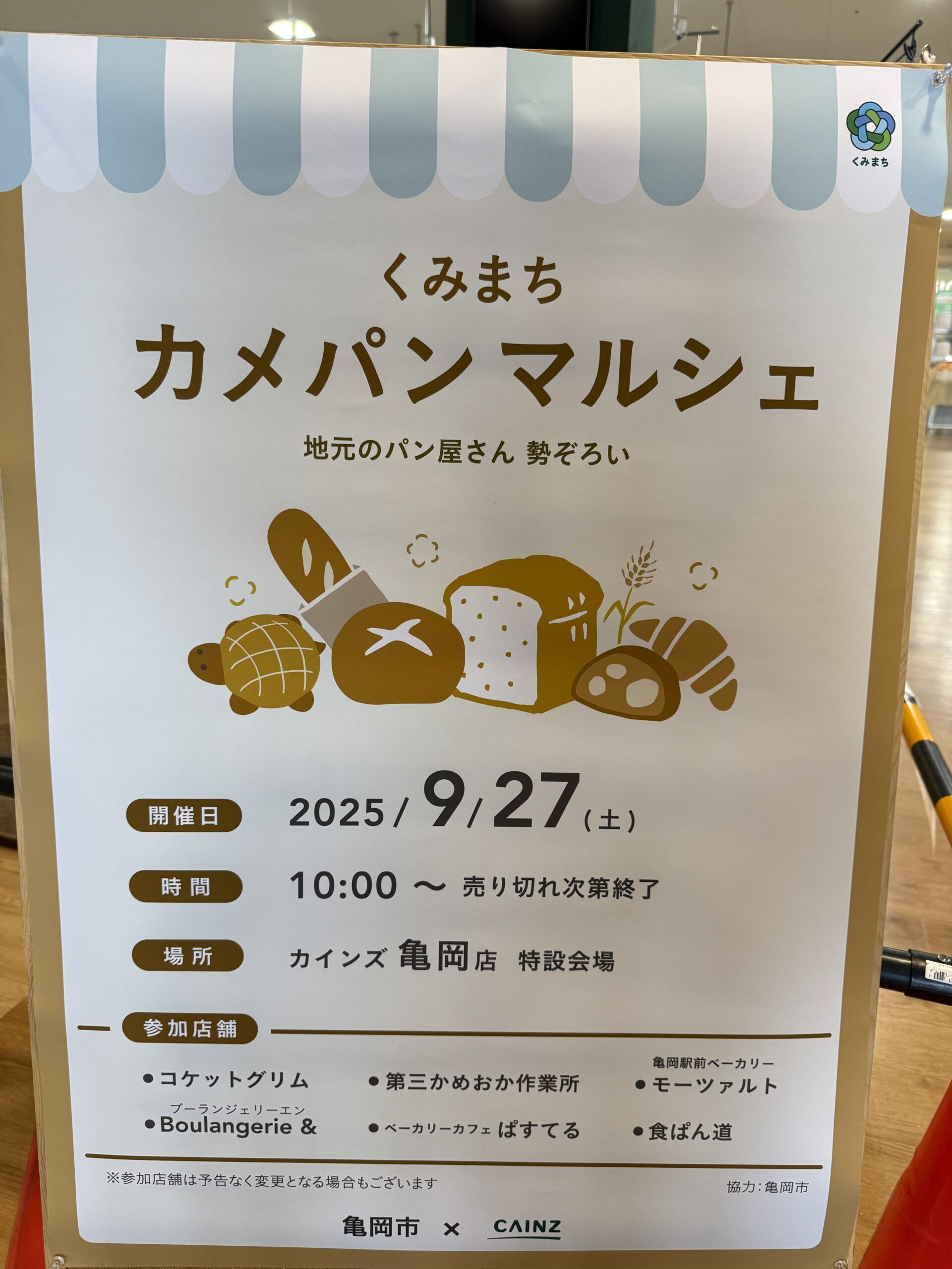 9/27くみまちカメパンマルシェに出店しています